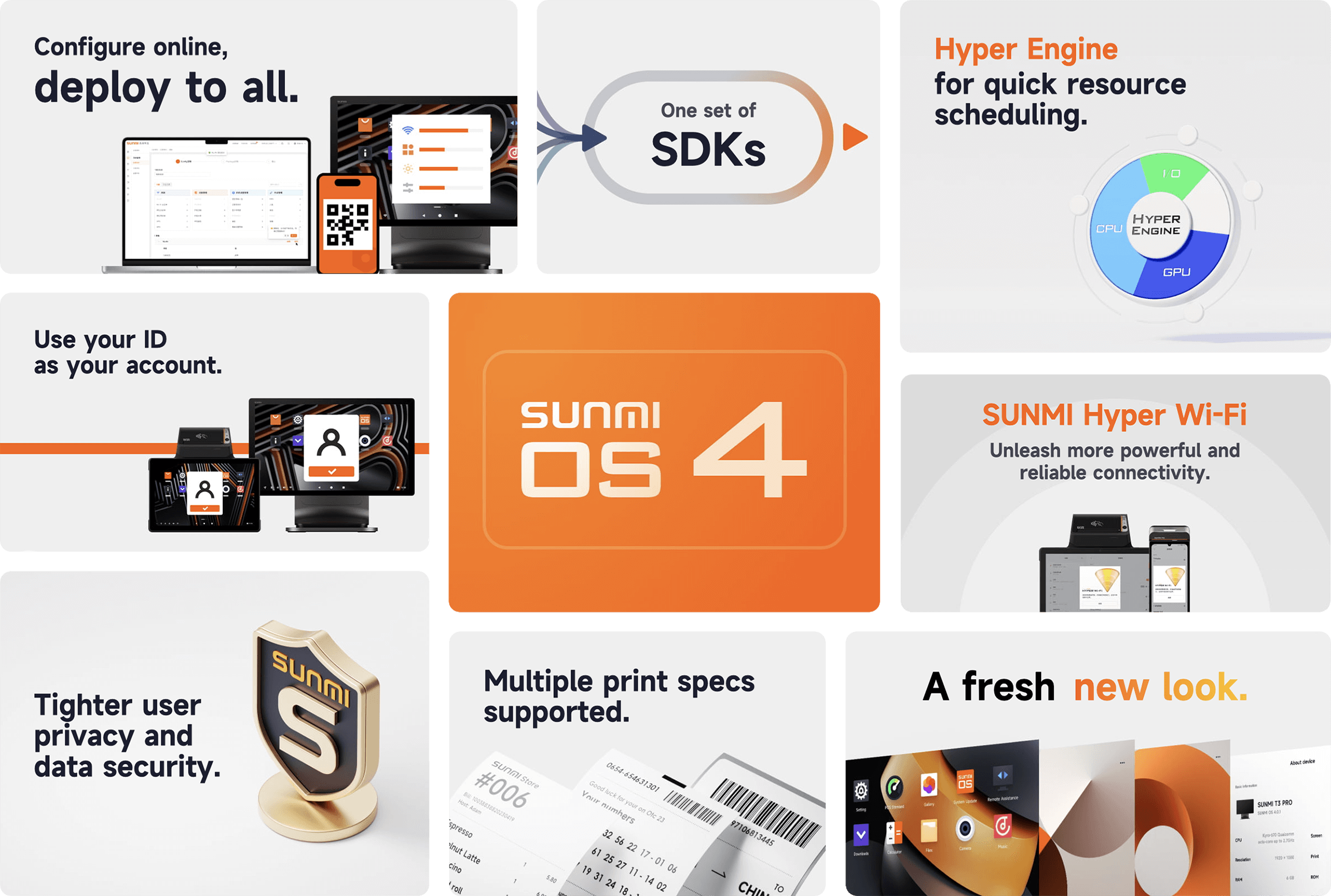 SUNMI devices come pre-installed with SUNMI OS 4.0, a commercial-grade operating system based on a heavily optimized version of Android. It combines robust security with extensive openness.